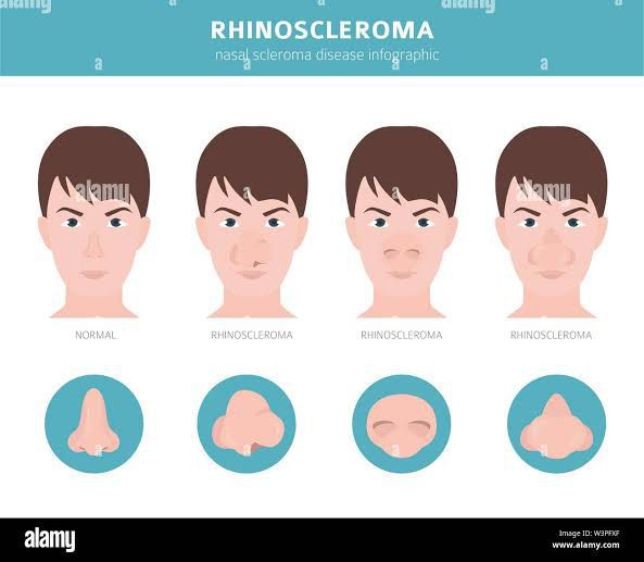 Symptoms include bleeding noses, nasal obstruction (or obstruction elsewhere in the respiratory tract), loss of the sense of smell, a hoarse voice, and thickening or numbing of the soft palate