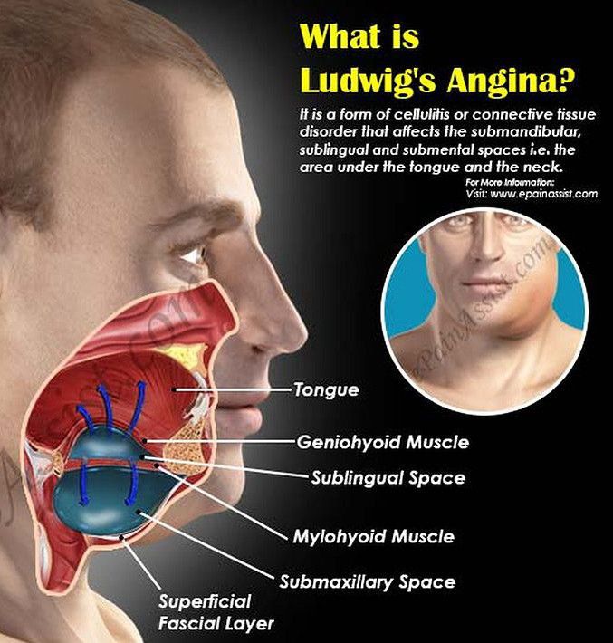 What causes Ludwig's angina? An abscessed tooth (tooth infection) causes Ludwig's angina. In 9 of 10 cases, the infection starts in the second or third molar in your lower jaw. Ludwig's angina is a rare form of cellulitis.