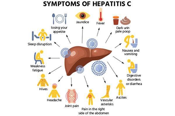 Hepatitis C often doesn't have any noticeable symptoms until the liver has been significantly damaged. This means many people have the infection without realising it. When symptoms do occur, they can be mistaken for another condition. Symptoms can include: flu-like symptoms, such as muscle aches and a high temperature (fever) feeling tired all the time loss of appetite abdominal pain feeling and being sick The only way to know for certain if these symptoms are caused by hepatitis C is to get tested