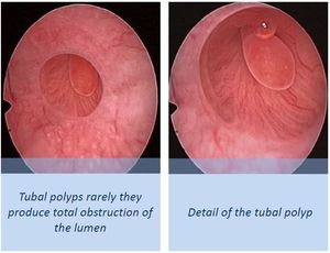 Polyps at the tubal ostium present as small, well-defined lesions, and they are found in up to 10% of HSG performed on infertile patients