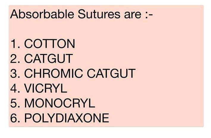 Here is a list of absorbable sutures.
