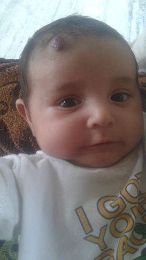 Im sorry to say but that baby is becoming a demon, thats the first sign of horn growth
