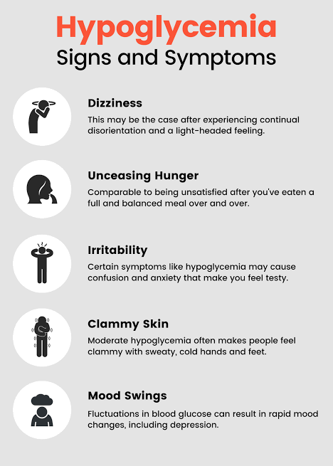 Most people will have some warning that their blood glucose levels are too low, which gives them time to correct them. Symptoms usually occur when blood sugar levels fall below four millimoles (mmol) per litre. Typical early warning signs are feeling hungry, trembling or shakiness, and sweating. In more severe cases, you may also feel confused and have difficulty concentrating. In very severe cases, a person experiencing hypoglycaemia can lose consciousness. It's also possible for hypoglycaemia to occur during sleep, which can cause excess sweating, disturbed sleep, and feeling tired and confused upon waking.