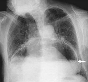 Nope pnuemonia contain air in most of the lobes of any side of lung or both side of lung .. while here its changing postion of diaphragm or esophagus (hint for the ans )