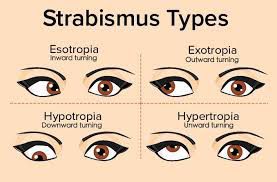 Inward turning (esotropia) Outward turning (exotropia) Upward turning (hypertropia) Downward turning (hypotropia
