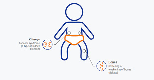 Early symptoms include poor feeding, vomiting, and dehydration. Kidney problems and vision problems may also develop. The adult form of Cystinosis primarily affects the eyes, causing light sensitivity.