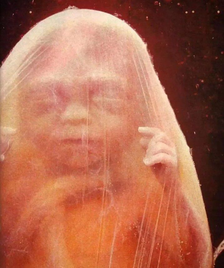 A living 28 weeks old foetus shrounded in amnion.