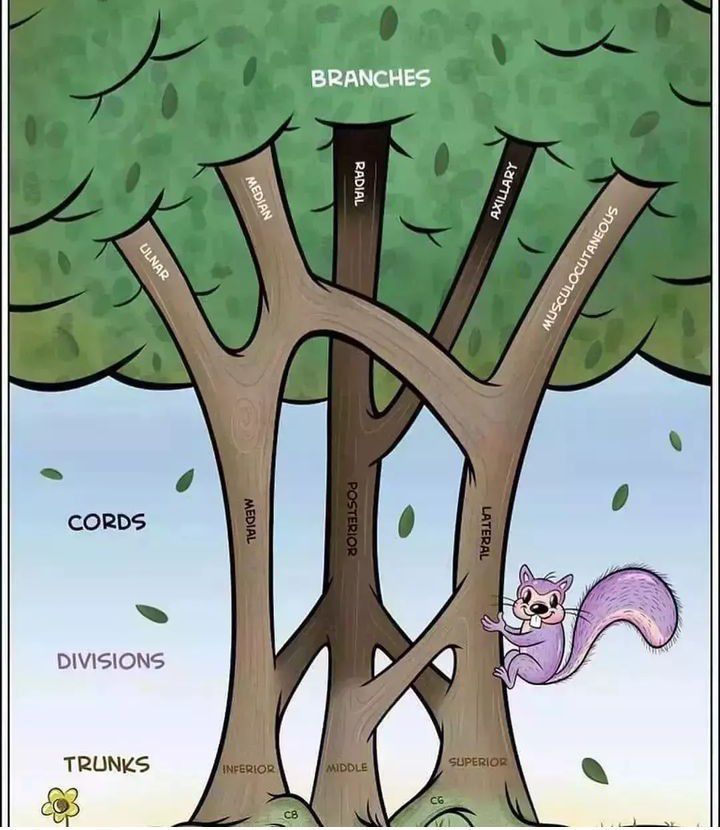 The brachial plexus (plexus brachialis) is a somatic nerve plexus formed by intercommunications among the ventral rami (roots) of the lower 4 cervical nerves (C5-C8) and the first thoracic nerve (T1). The plexus, depicted in the images below, is responsible for the motor innervation of all of the muscles of the upper extremity, with the exception of the trapezius and levator scapula.
