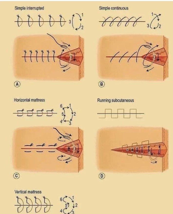 Different types of sutures are shown here.