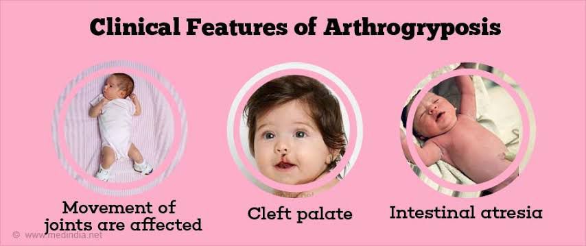 Symptoms of Arthrogryposis Thin, weak (atrophied), stiff or missing muscles. Stiff joints due to extra tissue (fibrosis or fibrous ankylosis) Differences in the skin around their joints, such as webbing.