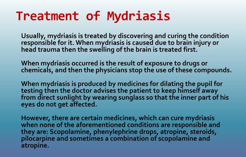 Wearing sunglasses to reduce sunlight sensitivity (photochromic lenses, polarized lenses). Prosthetic contact lenses (to improve the appearance of eyes as the result of varying pupil size caused by trauma). Surgery (to repair eye damage from injury). Substance abuse rehabilitation.