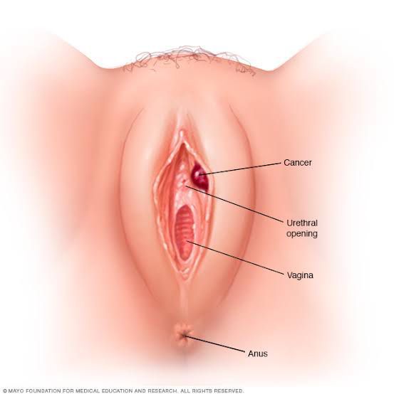 Cancer of the vulva is a rare type of cancer that affects women and anyone with a vulva. The vulva is a woman's external genitals. It includes the lips surrounding the vagina (labia minora and labia majora), the clitoris (sexual organ that helps reach sexual climax), and the Bartholin's glands (2 small glands each side of the vagina). Most of those affected by vulval cancer are older women and anyone with a vulva over the age of 65. The condition is rare in women and anyone with a vulva under 50 who have not yet gone through the menopause.