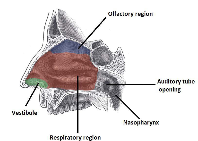 The inferior nasal meatus is the largest of the spaces in the nasal cavity that lies beneath the inferior nasal concha and the lateral nasal wall. It is responsible for the majority of airflow direction, humidification, heating and filtering of air inhaled through the nose.