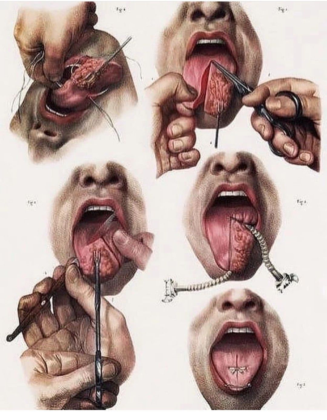 Cutting tongue without anesthesia to remove the part with cancer back in 1841.