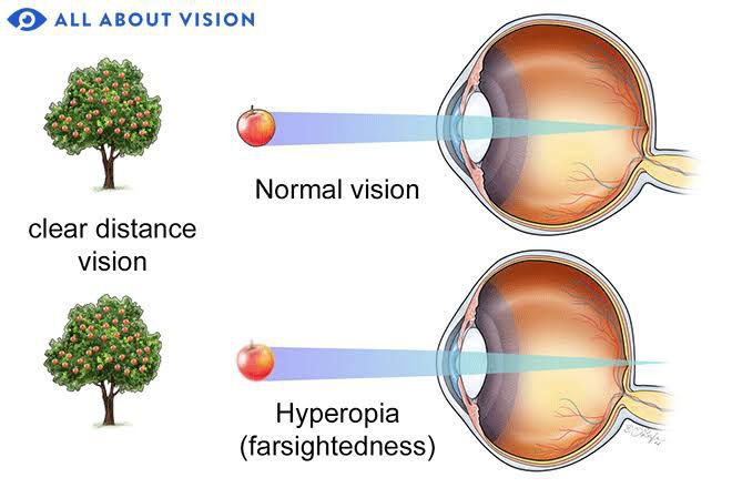 Wearing prescription lenses treats farsightedness by counteracting the decreased curvature of your cornea or the smaller size (length) of your eye. Types of prescription lenses include: Eyeglasses. This is a simple, safe way to sharpen vision caused by farsightedness.