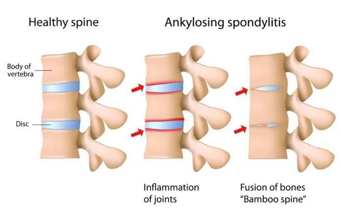 Ankylosing spondylitis (AS) is a long-term condition in which the spine and other areas of the body become inflamed. AS tends to first develop in teenagers and young adults. It's also around 2 times more common in men than in women.