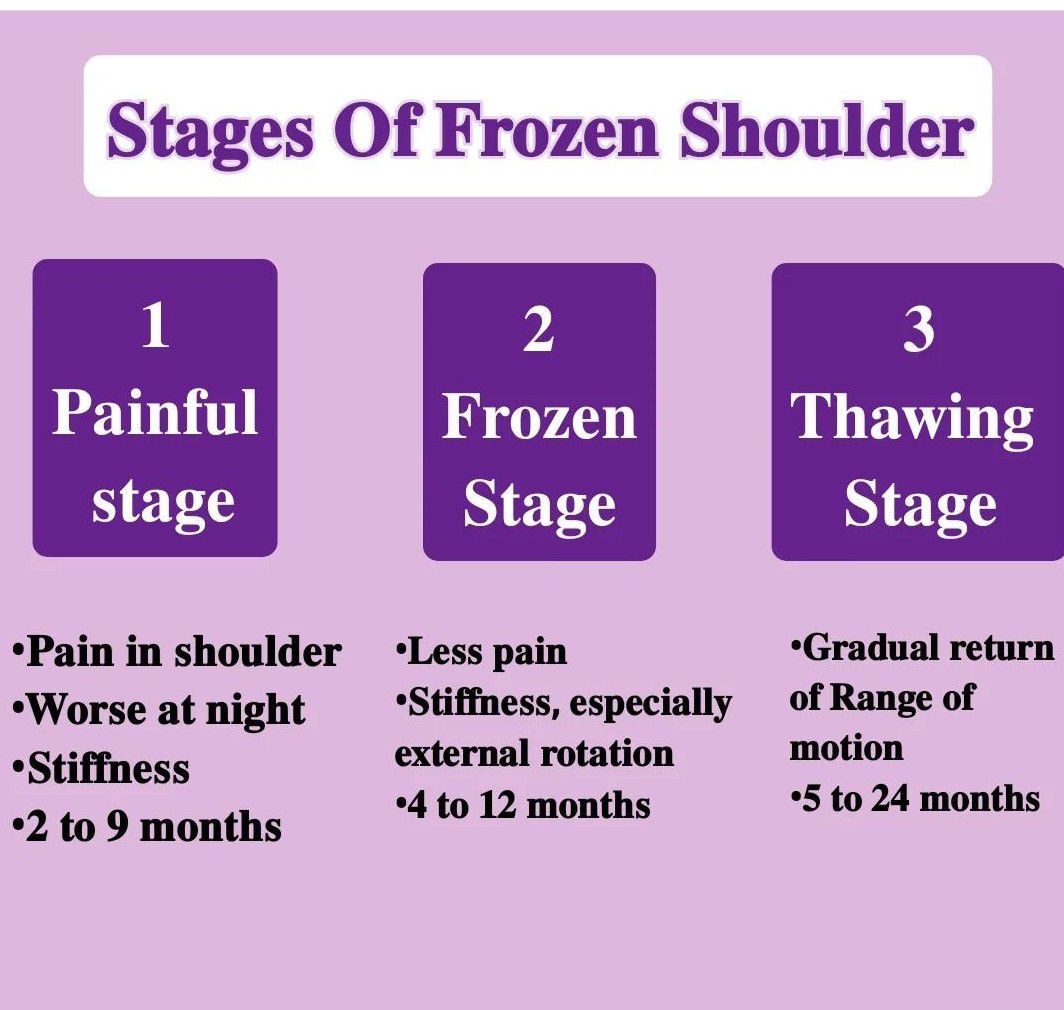 Stages of frozen shoulder shown here.