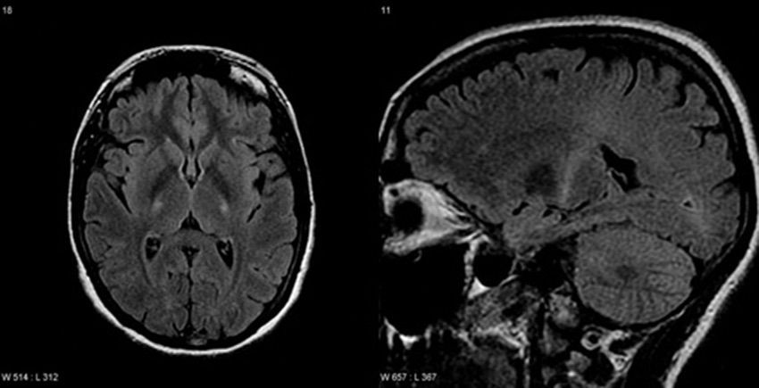T2 FLAIR depicting the corticospinal tract degeneration in ALS.