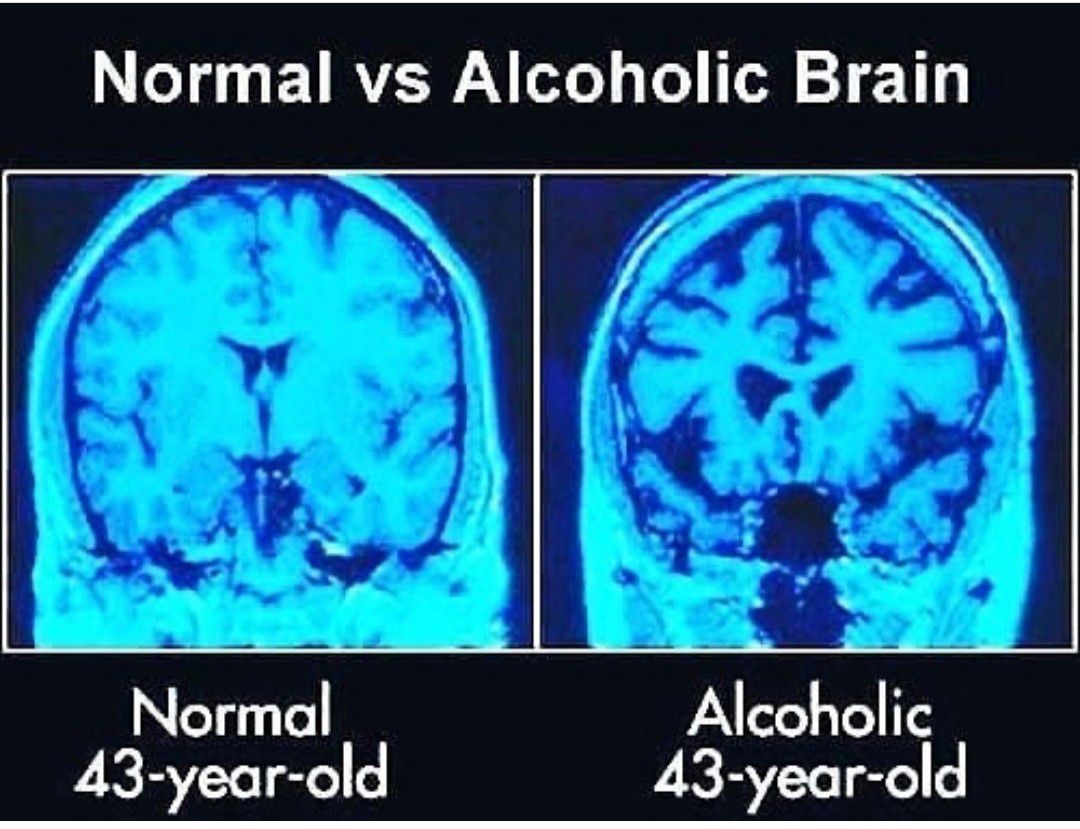 Here is a comparison of what normal brain looks like with that of an alcoholic.