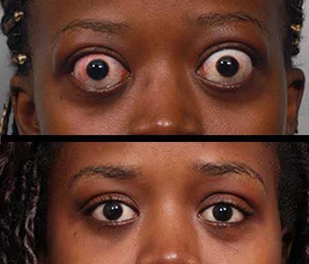 Basedowian ophthalmopathy is a term used to describe an eye disease resulting from an alteration in the functioning of one of the most important glands of our body, the thyroid. It is one of the earliest symptoms due to hyperthyroidism (it can occur with much less frequency even in cases of hypothyroidism), to the point that many times the first diagnosis is made by an ophthalmologist during an eye exam. Thyroid ophthalmopathy derives from what is called Basedow-Graves disease and is currently attributed to an infiltration of T lymphocytes within the tissue of the eyelid where the TSH receptor (TSH-R) target of the autoimmune attack is present . The inflammation produced leads to a series of chain reactions involving the eyelid muscle and causing it to increase in volume and contract strongly with the consequent retraction of the eyelid causing the particular symptom
