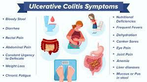 Diarrhea, often with blood or pus Rectal bleeding — passing small amount of blood with stool Abdominal pain and cramping Rectal pain Urgency to defecate Inability to defecate despite urgency Weight loss Fatigue Fever In children, failure to grow Most people with ulcerative colitis have mild to moderate symptoms. The course of ulcerative colitis may vary, with some people having long periods when it goes away. This is called remissio
