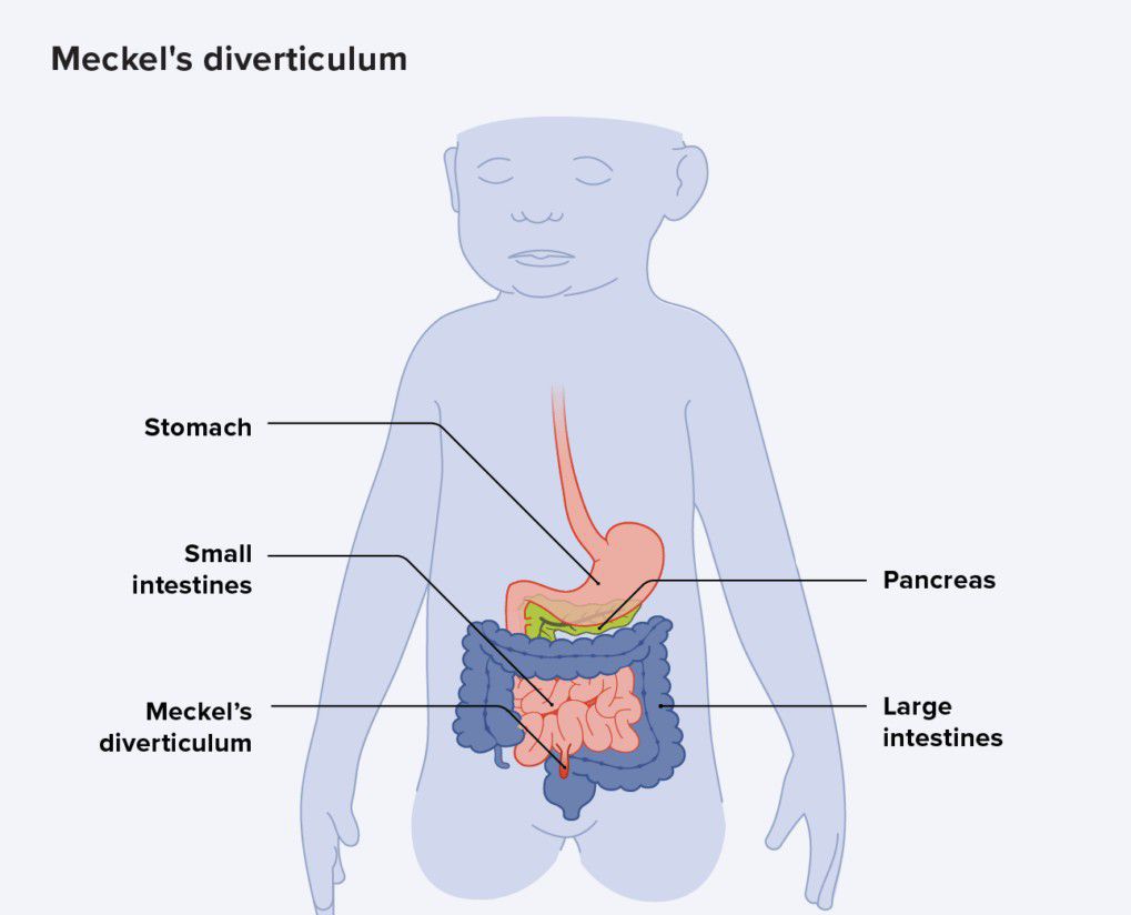 Meckel diverticulum, also known as Meckel's diverticulum, is the most common congenital abnormality of the small intestine; it is caused by an incomplete obliteration of the vitelline duct (ie, failure of the omphalomesenteric duct to close).