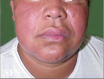 Melkersson-Rosenthal syndrome is a rare neurological disorder characterized by recurring facial paralysis, swelling of the face and lips (usually the upper lip), and the development of folds and furrows in the tongue. Onset is in childhood or early adolescence.