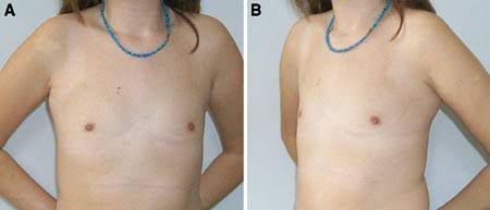 Amazia refers to a condition where one or both of the mammary glands is absent (the nipple and areola remain present).[1] This may occur either congenitally or iatrogenically (typically the result of surgical removal and/or radiation therapy). Amazia can be treated with breast implants.