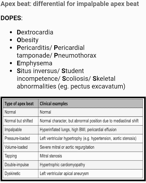 Differential diagnosis of impalpable Apex Beat is shown here.