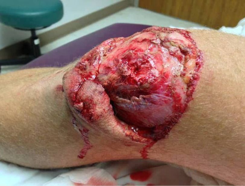⚠️ A case of a severe roadrash/avulsion, following a motorcycle accident! . Skin avulsion is a wound that happens when skin is torn from your body during an accident or other injury.The most common avulsion injury, usually occur during motor vehicle collisions. The severity of avulsion ranges from minor to moderate and severe. Suprafascial avulsions are those in which the depth of the removed skin reaches the subcutaneous tissue layer, while subfascial avulsions extend deeper than the subcutaneous layer. Small suprafascial avulsions can be repaired by suturing, but most avulsions require skin grafts or reconstructive surgery.