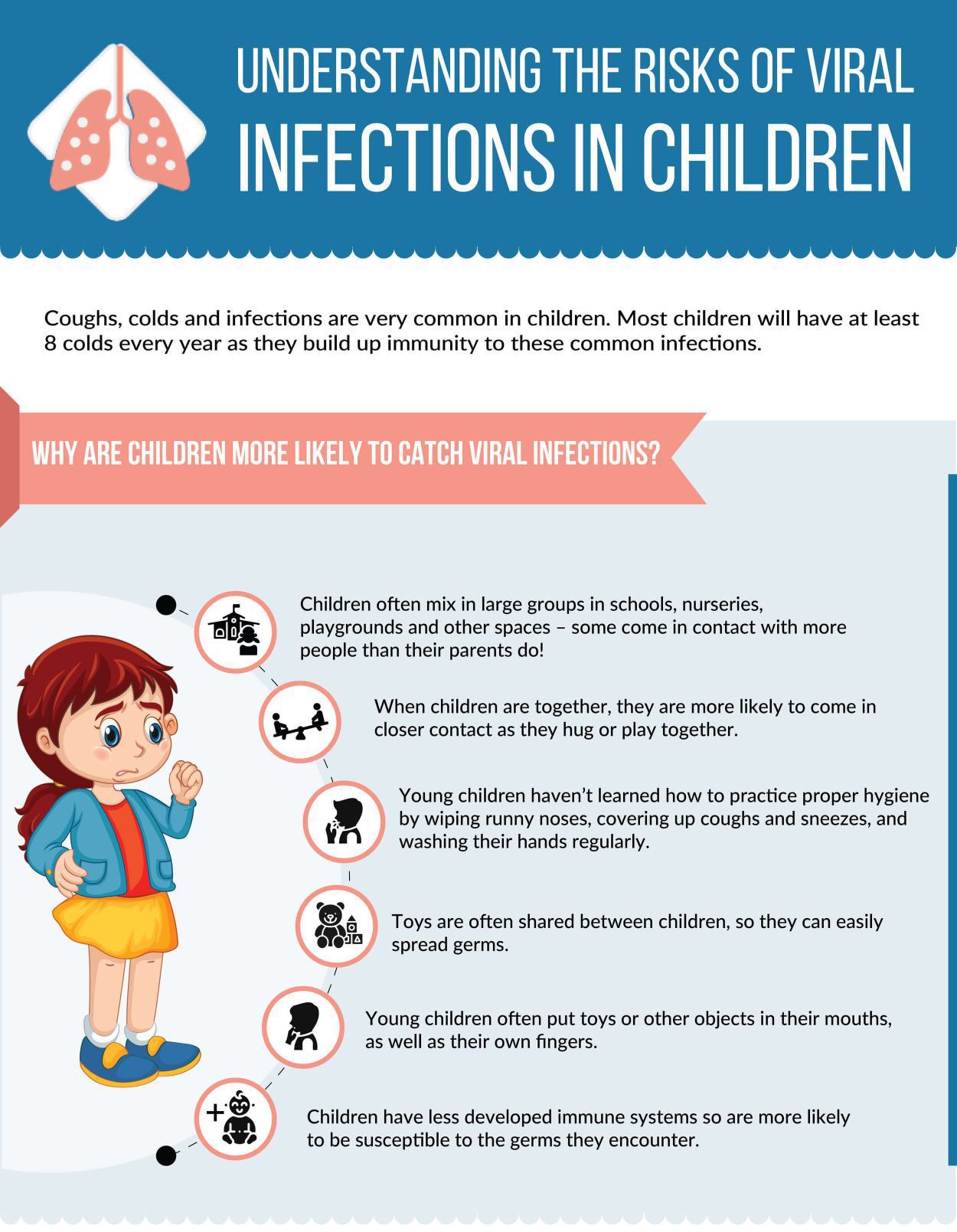 Symptoms of a viral infection depend on where you're infected, but some common ones include: Flu-like symptoms: fever, head and body aches, fatigue. Upper respiratory symptoms: sore throat, cough, sneezing. Digestive symptoms: nausea, vomiting, diarrhea. Skin conditions: rashes, sores, blisters, warts.