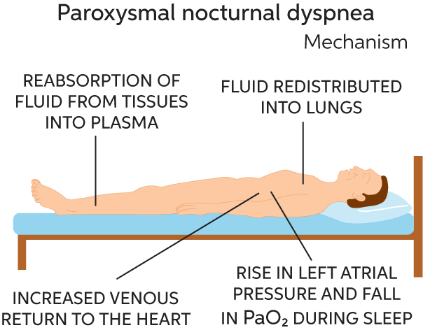 PND tends to occur within a few hours after you’ve fallen asleep. It wakes you up. You might gasp for air, cough, or sit or stand up to try to open your airways. After a while, your breathing may return to normal. It might take a half an hour, or sometimes longer, to recover. Many people find it difficult to return to sleep after an episode of PND. PND can be distressing, and one or more episodes may lead to sleep anxiety or even insomnia. If sitting or standing up doesn’t relieve symptoms of PND, you should call for emergency medical assistance right away