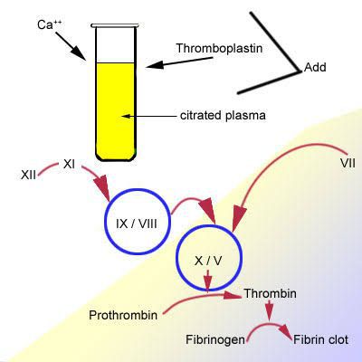 A prothrombin time (PT) test measures how long it takes for a clot to form in a blood sample. An INR (international normalized ratio) is a type of calculation based on PT test results. Prothrombin is a protein made by the liver. It is one of several substances known as clotting (coagulation) factors