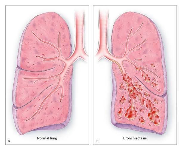 Symptoms of bronchiectasis include: Cough with lots of mucus and pus. Repeated colds. Bad-smelling mucus. Shortness of breath (dyspnea). Wheezing. Coughing up blood (hemoptysis). Swollen fingertips with curved nails (nail clubbing). You might have stretches of time where your symptoms aren’t as bad and then have a flare-up (exacerbation) where your symptoms get worse. Exacerbation symptoms include: Extreme tiredness (fatigue). Fever, chills. Increased shortness of breath. Night sweats.