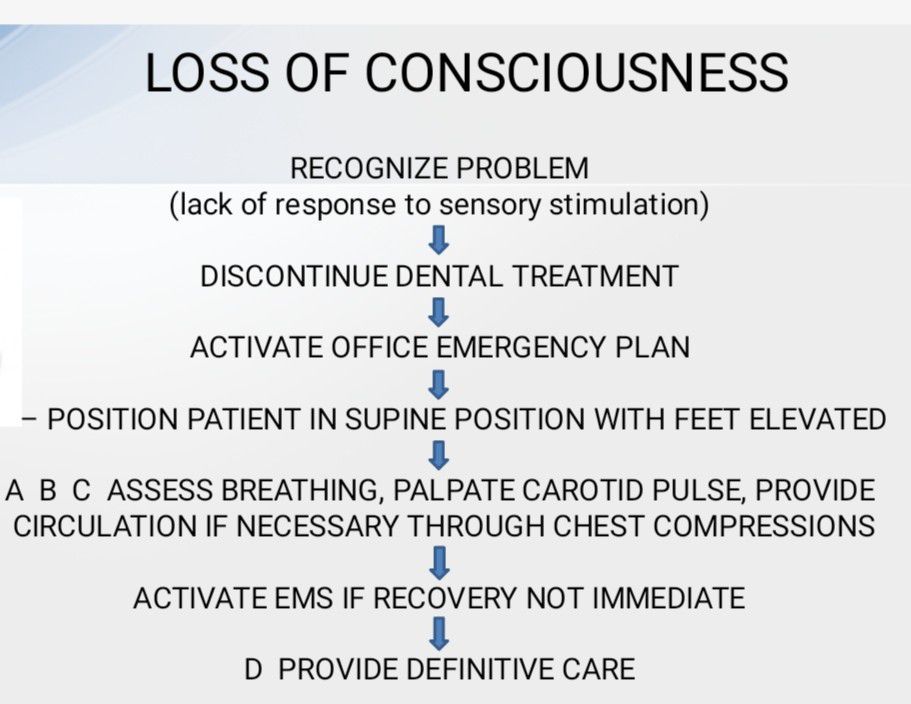 Here is how you manage loss of consciousness on a dental chair.