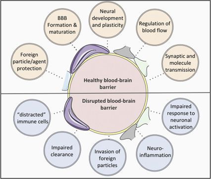 Hyper-permeability of the blood-brain barrier and neuroinflammation have been linked to a number of different brain and mental health problems and symptoms, including depression, anxiety, cognitive impairment, brain fog, Alzheimer's disease, Parkinson's disease, headaches, migraines, chronic fatigue syndrome.
