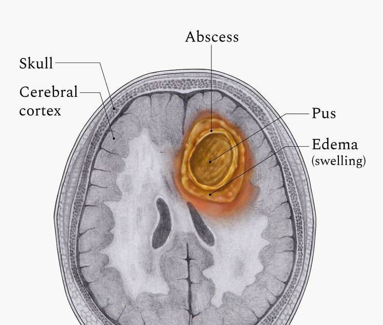 It usually occurs when bacteria or fungi enter the brain tissue after an infection or severe head injury.