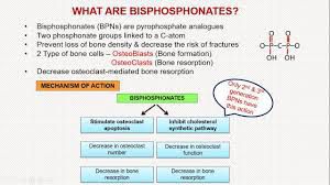 Bisphosphonates are a group of drugs that work by slowing bone loss. They reduce the risk of hip and spine fractures. Bone renewal is a slow process, but in many people an increase in bone density can be measured over five years of treatment.