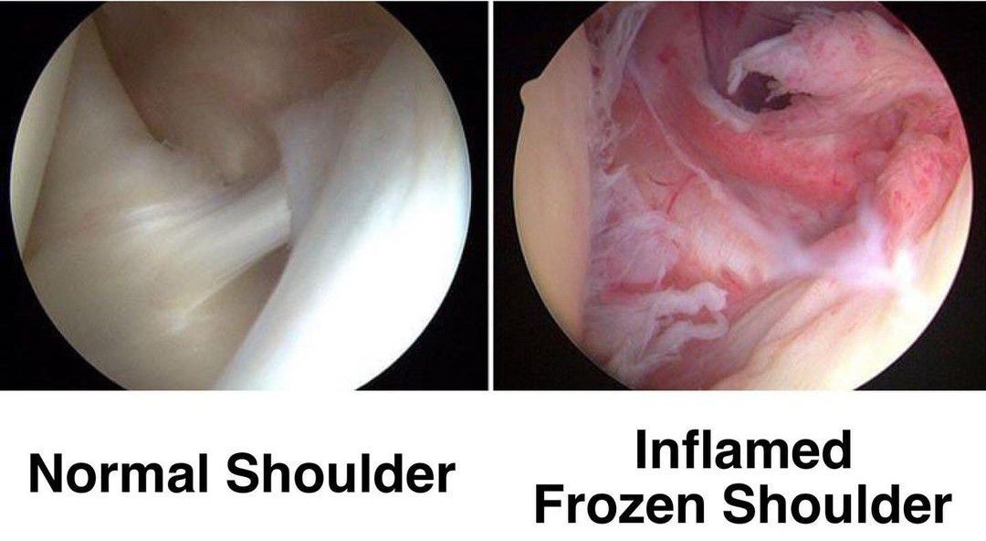 Frozen shoulder occurs when the connective tissue enclosing the joint thickens and tightens. Frozen shoulder, also called adhesive capsulitis, involves stiffness and pain in the shoulder joint. Signs and symptoms typically begin slowly, then get worse. Over time, symptoms get better, usually within 1 to 3 years.