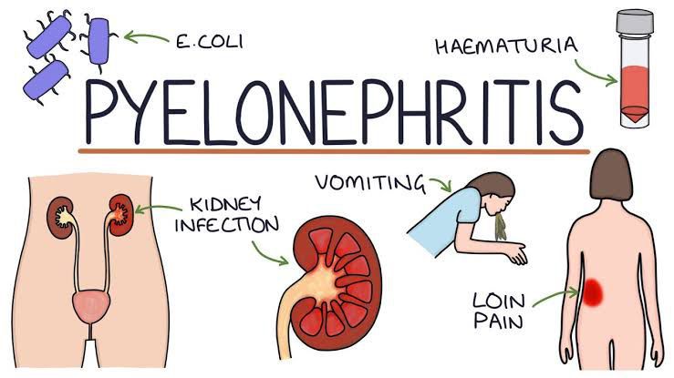 Symptoms of a kidney infection might include: Fever Chills A burning feeling or pain when urinating Having to urinate often A strong, lasting urge to urinate Back, side or groin pain Nausea and vomiting Pus or blood in the urine Urine that smells bad or is cloudy Belly pain
