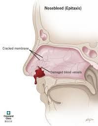 Treatments depend on the cause and could include: Nasal packing. Gauze, special nasal sponges or foam or an inflatable latex balloon is inserted into your nose to create pressure at the site of the bleed. The material is often left in place for 24 to 48 hours before being removed by a healthcare professional. Cauterization. This procedure involves applying a chemical substance (silver nitrate) or heat energy (electrocautery) to seal the bleeding blood vessel. A local anesthetic is sprayed in the nostril first to numb the inside of your nose. Medication adjustments/new prescriptions. Reducing or stopping the amount of blood thinning medications can be helpful. In addition, medications for controlling blood pressure may be necessary. Tranexamic (Lystedaâ), a medication to help blood clot, may be prescribed. Foreign body removal if this is the cause of the nose bleed. Surgical repair of a broken nose or correction of a deviated septum if this is the cause of the nosebleed. Ligation. In this procedure, the culprit blood vessel is tied off to stop the bleeding.
