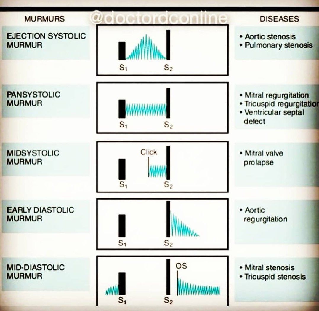 Different types of heart murmurs are shown here.