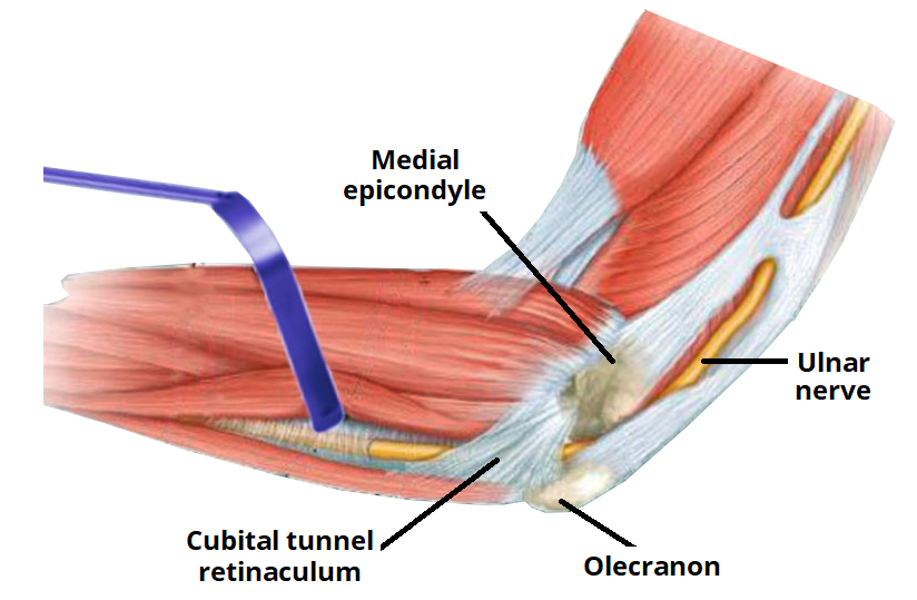 What is cubital tunnel syndrome? Cubital tunnel syndrome happens when the ulnar nerve, which passes through the cubital tunnel (a tunnel of muscle, ligament, and bone) on the inside of the elbow, is injured and becomes inflamed, swollen, and irritated
