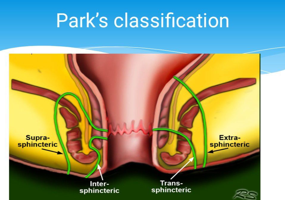 In 1976, Dr. Parks published a paper describing a classification system for anal fistulas that is still widely used today. Four types were described: intersphincteric, transsphincteric, suprasphincteric, and extrasphincteric.