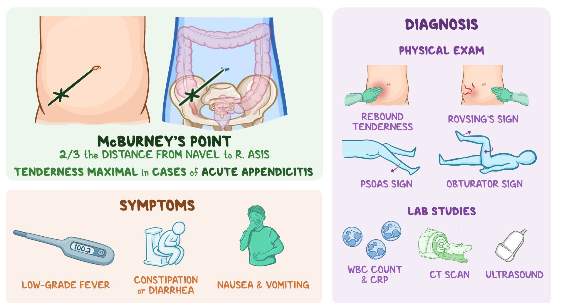 Here are important points for the diagnosis of appendicitis.