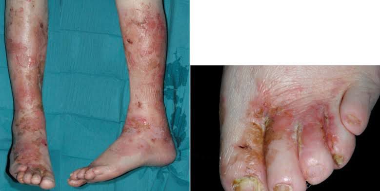 The glucagonoma syndrome is a rare disorder characterized by weight loss, necrolytic migratory erythema (NME), diabetes, stomatitis, and diarrhea. We identified 21 patients with the glucagonoma syndrome evaluated at the Mayo Clinic from 1975 to 1991.