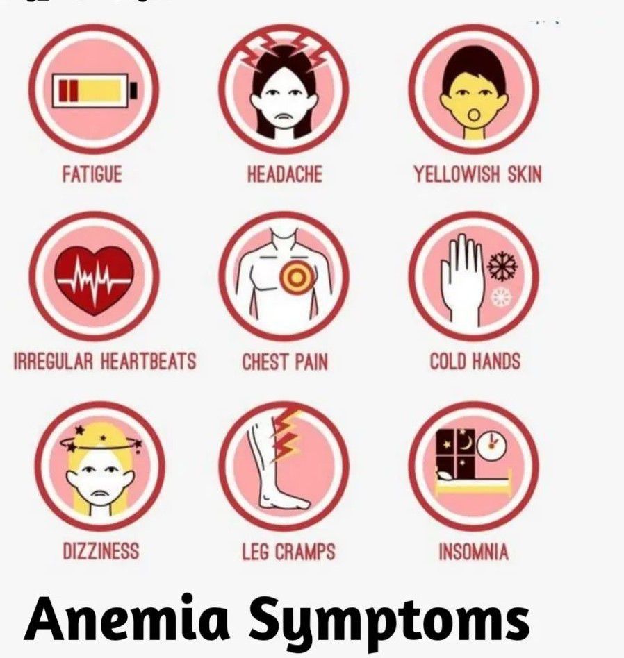 Several symptoms of Anemia are shown here.