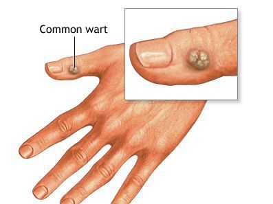Common warts are small, grainy skin growths that occur most often on your fingers or hands. Rough to the touch, common warts also often feature a pattern of tiny black dots, which are small, clotted blood vessels. Common warts are caused by a virus and are transmitted by touch.