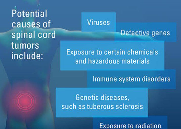 Prior history of cancer, with breast cancer, lung cancer, prostate cancer and multiple myeloma most likely to spread to the spine. Compromised immune system. Hereditary disorders, including Von Hippel-Lindau disease and neurofibromatosis (NF2) Radiation therapy exposure