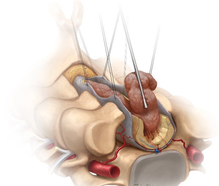 Surgery: Some spinal tumors can be removed by surgery. If the entire tumor cannot be removed, radiation therapy may be given after surgery to relieve pressure on the spinal cord. Radiation therapy: may be given alone or after surgery to relieve pressure on the spinal cord.